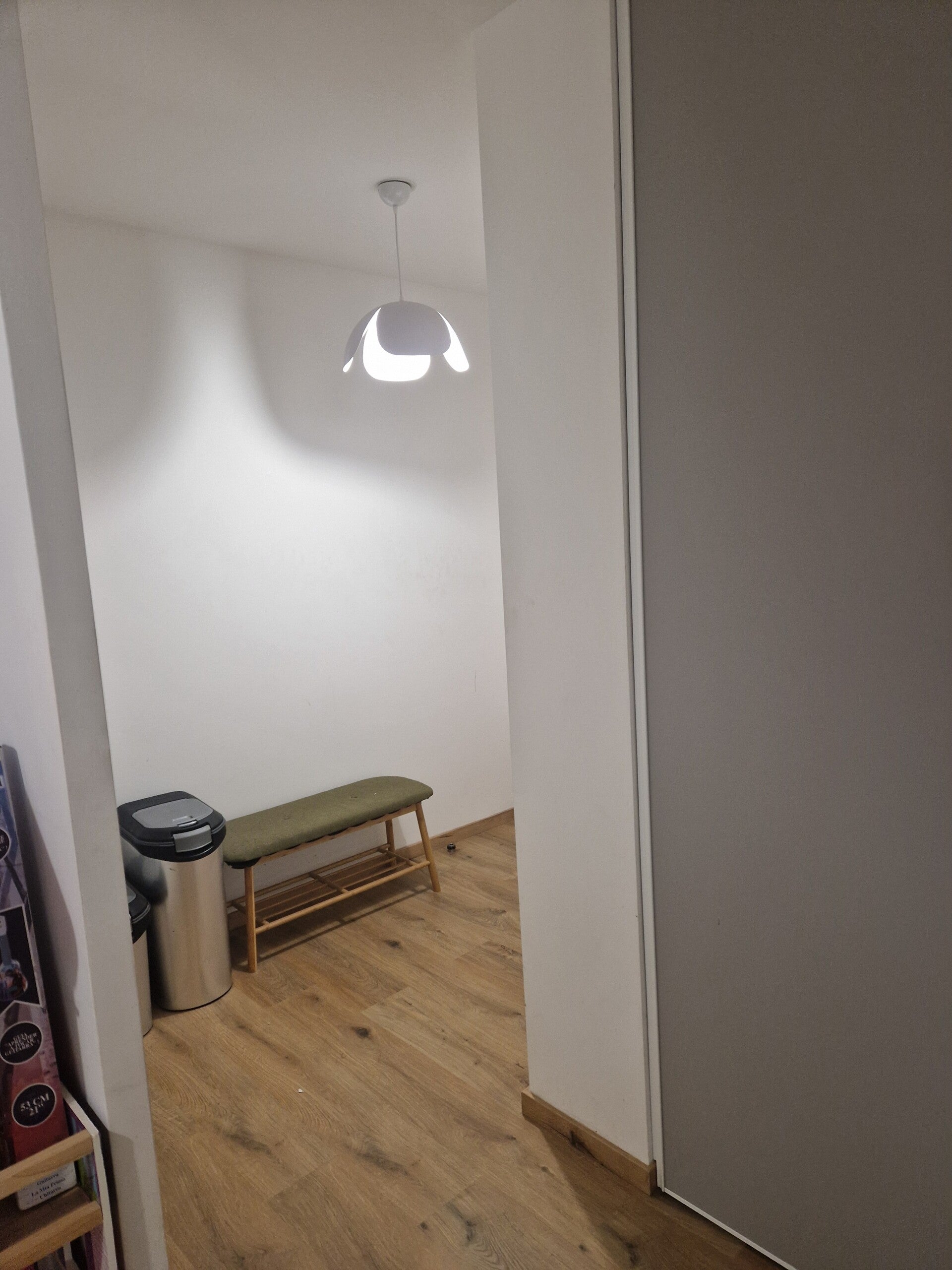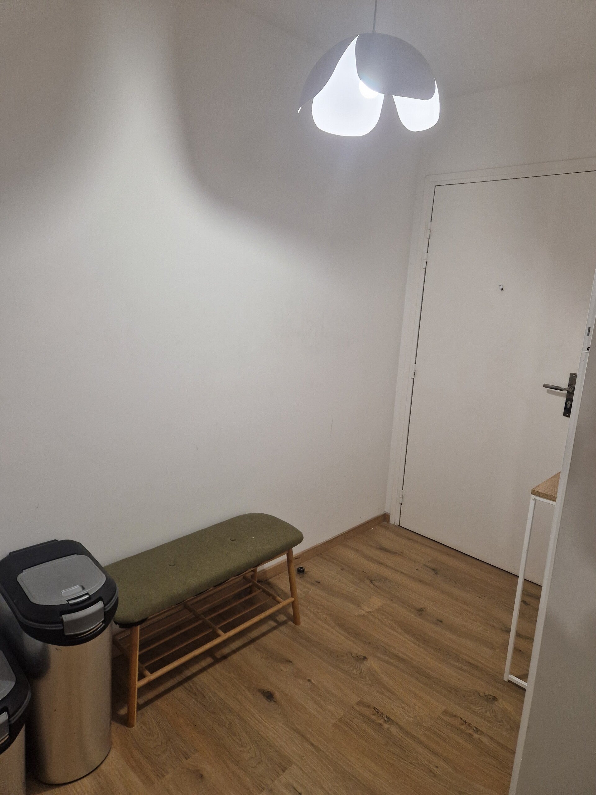 Le projet consistait à rendre l’entrée et le couloir d’un appartement plus moderne et vivant avec un petit budget. Ayant des animaux, il fallait l'adapter notamment par les caisses de nourritures à dissimuler ainsi que l'implantation de panneaux végétaux fixés au plafond.